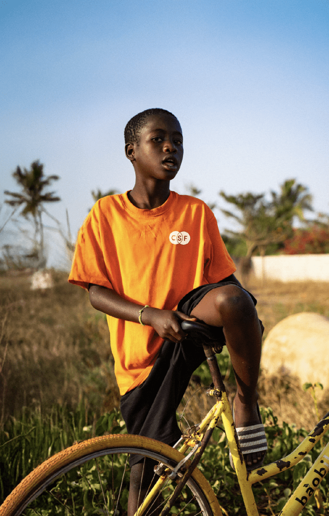 Join CSF and become part of a global cycling community. As a welcome gift, you’ll receive a replica of the license plate used on our bicycles in Senegal — a symbol of the journey you’re making possible.